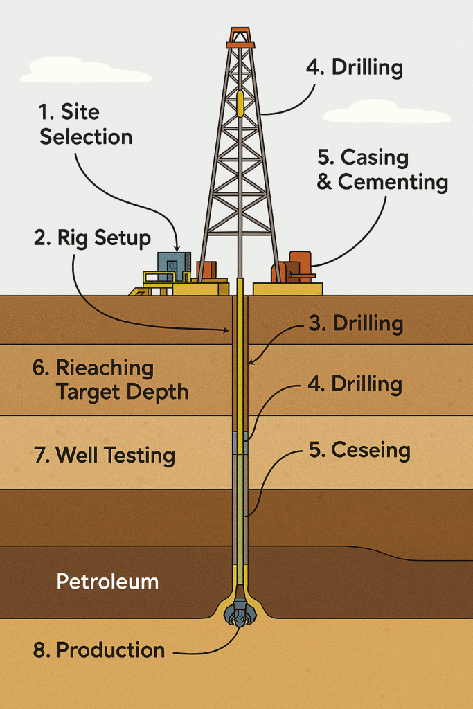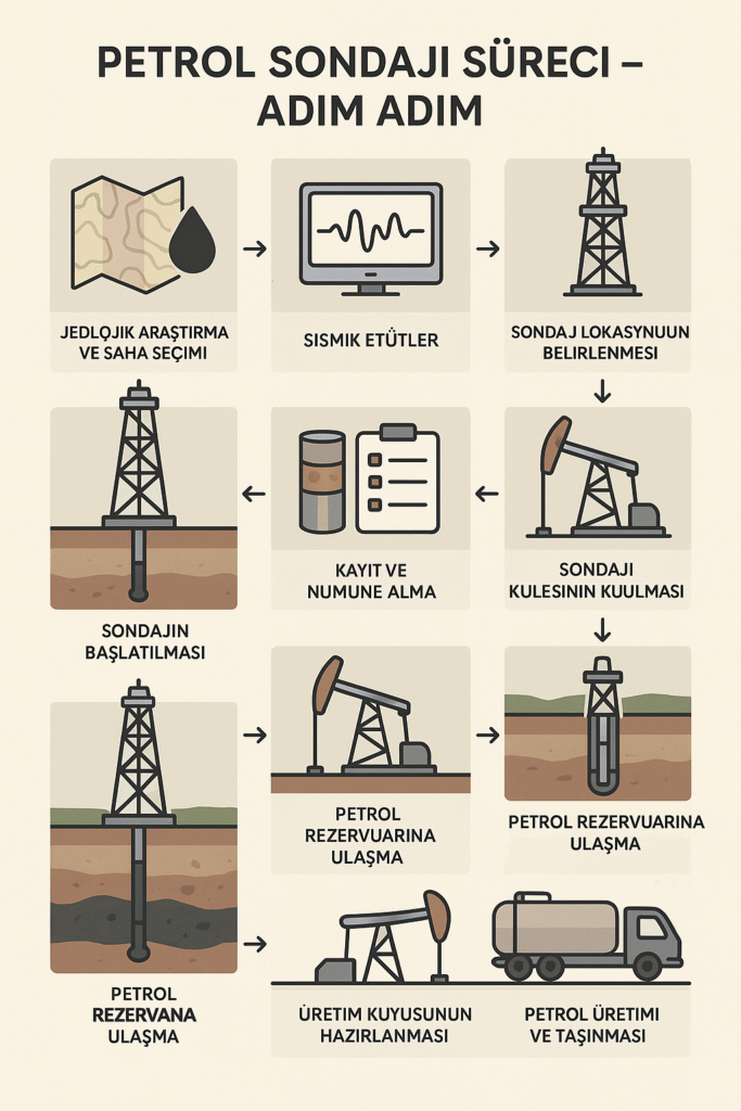 Petrol sondaj süreci, yer altındaki petrol ve/veya doğal gaz rezervlerine ulaşmak için yapılan karmaşık ve çok aşamalı bir işlemdir.